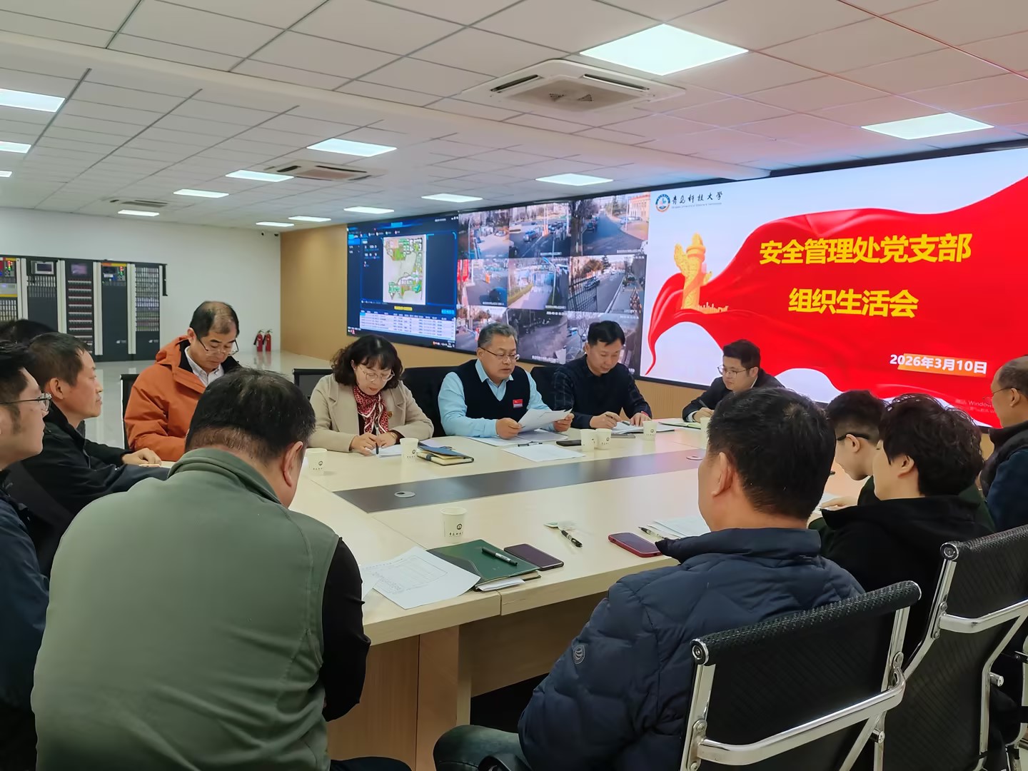 会上,王永波代表安全管理处党支部作2025年度工作报告,全面回顾了一年来安全管理处在政治保卫、治安管理、消防隐患排查、校园交通治理等方面的工作成效,并重点查摆了当前工作中存在的突出问题。随后,大家本着对同志负责、对事业负责的态度,开门见山,坦诚相见逐一进行个人自评和相互批评,真正做到了“红脸出汗”。党支部按程序进行了民主评议党员和党支部自评。