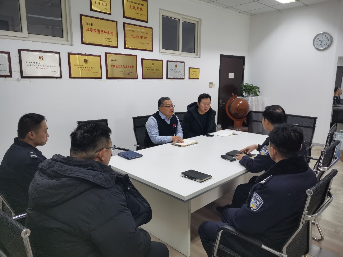 1月6日,青岛市崂山治安大队调研组一行来到学校崂山校区,就校园安全管理工作进行调研。学校安全管理处处长王永波主持座谈会。