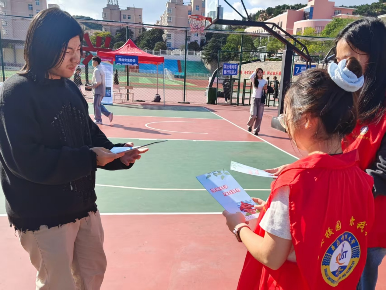 活动现场,协会成员化身“反邪宣传员”,一边向过往师生递发手册,一边结合案例讲解核心要点,面对师生提出的问题,成员们对照手册内容逐一细致解答,让宣发不只是“发手册”,更是“传方法”。不少师生在翻阅后主动留存手册,表示内容很实用,既能自己学,也能给家人科普。
